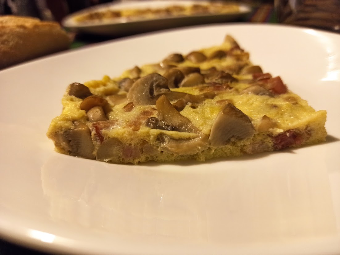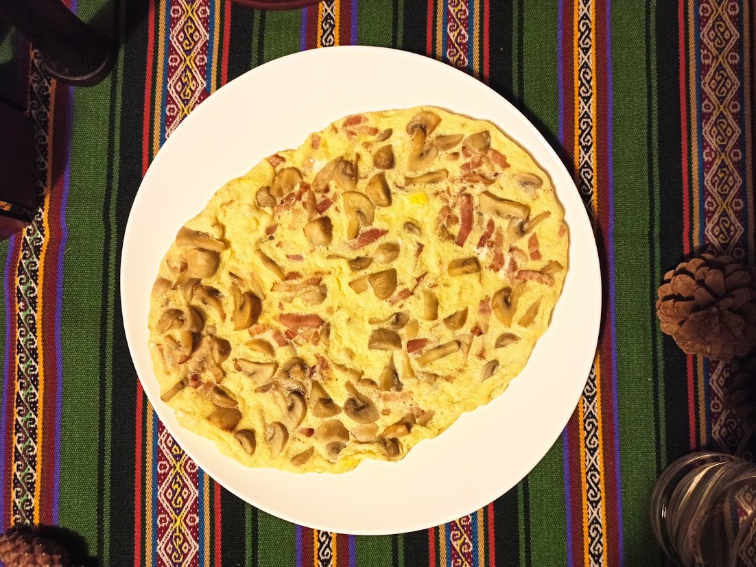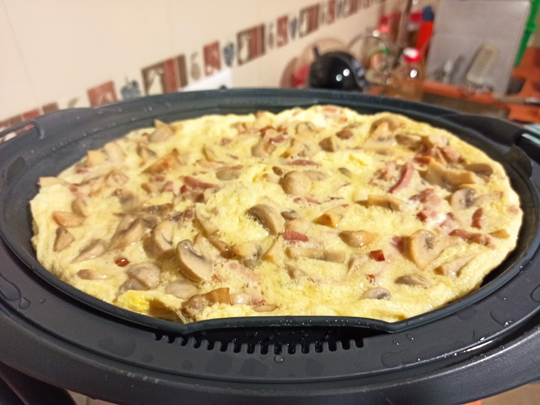 Tortilla de champiñones y beicon al vapor