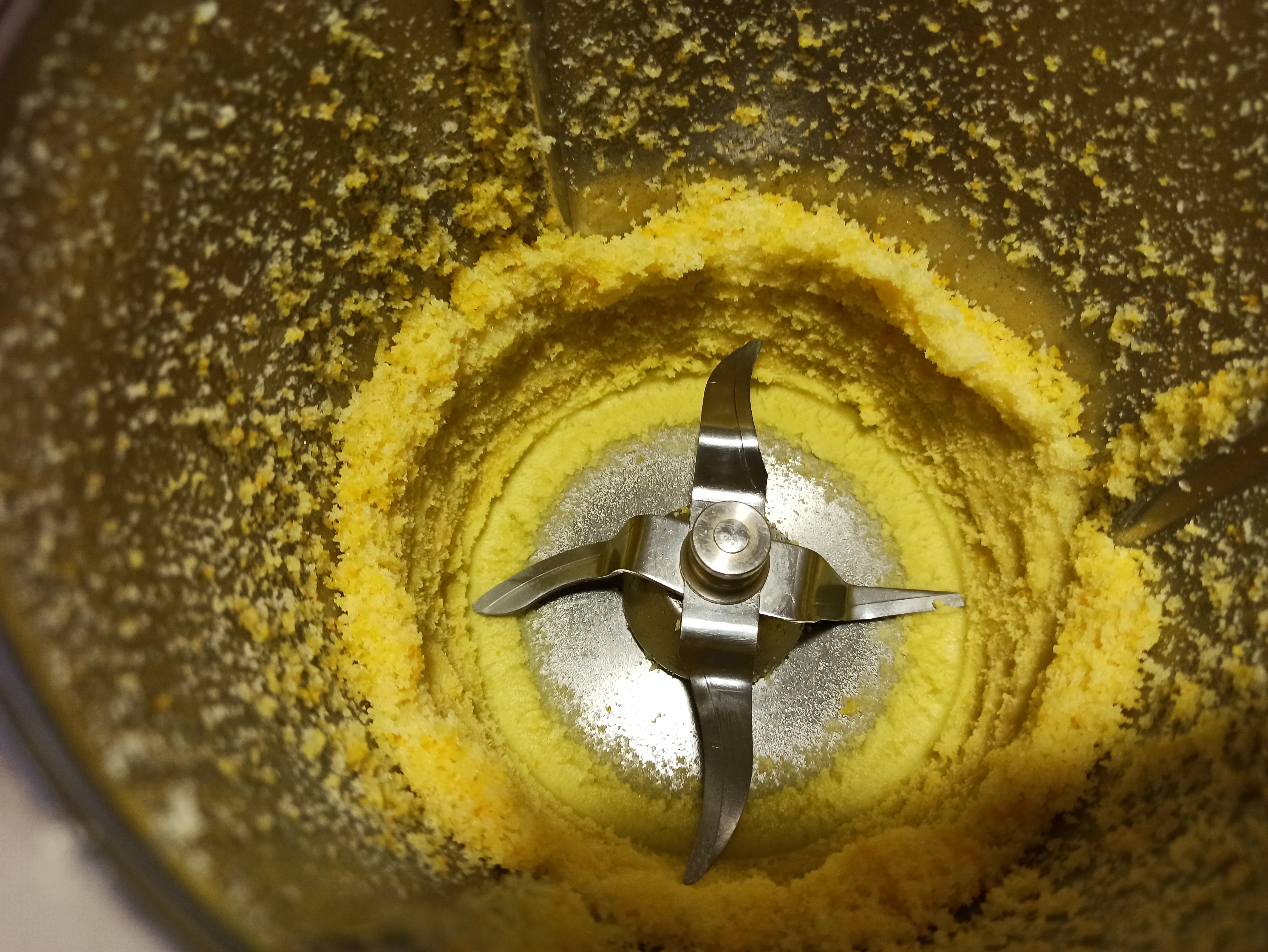 - Poner en el vaso el azúcar, la corteza de limón y la corteza de naranja. Pulverizar 20 seg / vel 10.