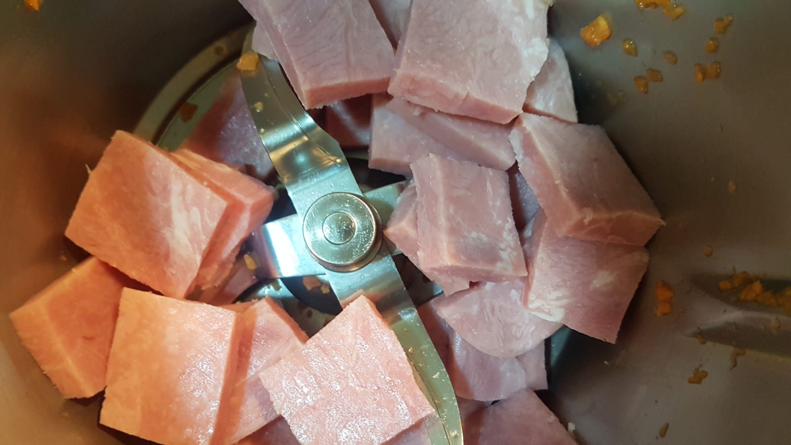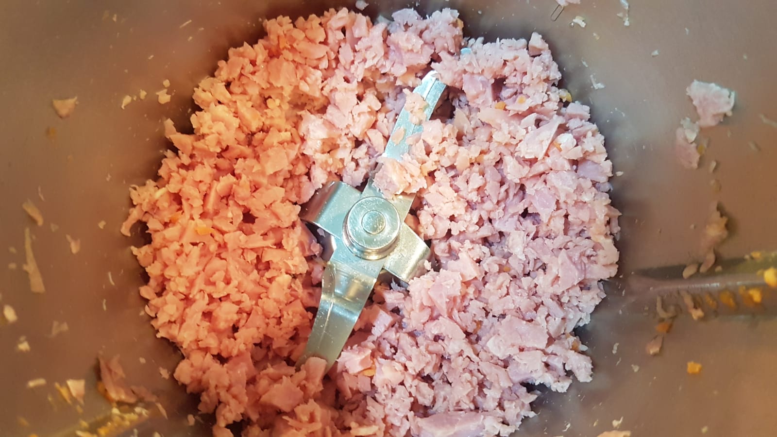 Os dejo aquí los antes y despues de los troceados de la zanahoria y del jamón cocido :)