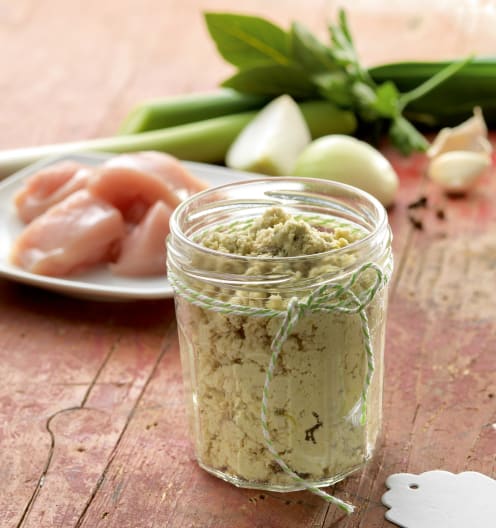Para preparar un caldo de pollo, use 1 cucharadita colmada por cada 500 g de agua.