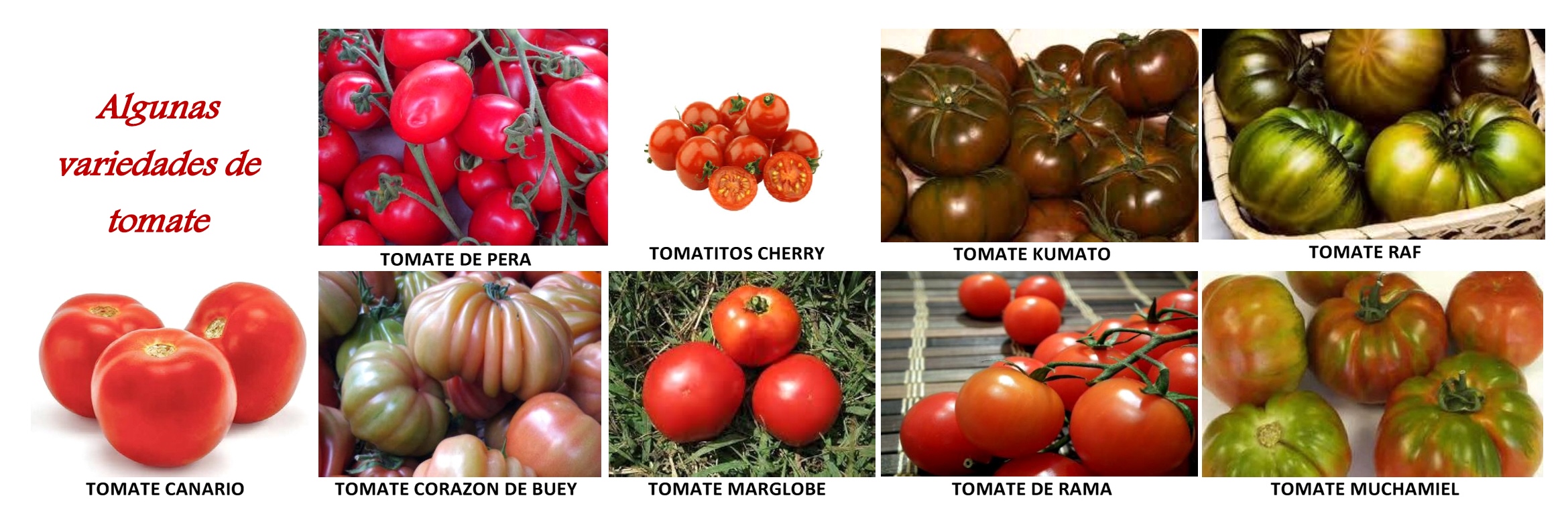 Hay muchas más variedades de tomates pero una característica común a todas ellas es su alto contenido en licopenos. Los licopenos son unas sustancias naturales presentes en mayor concentración en la piel del tomate, tienen propiedades antioxidantes y ayudan a reducir el colesterol.