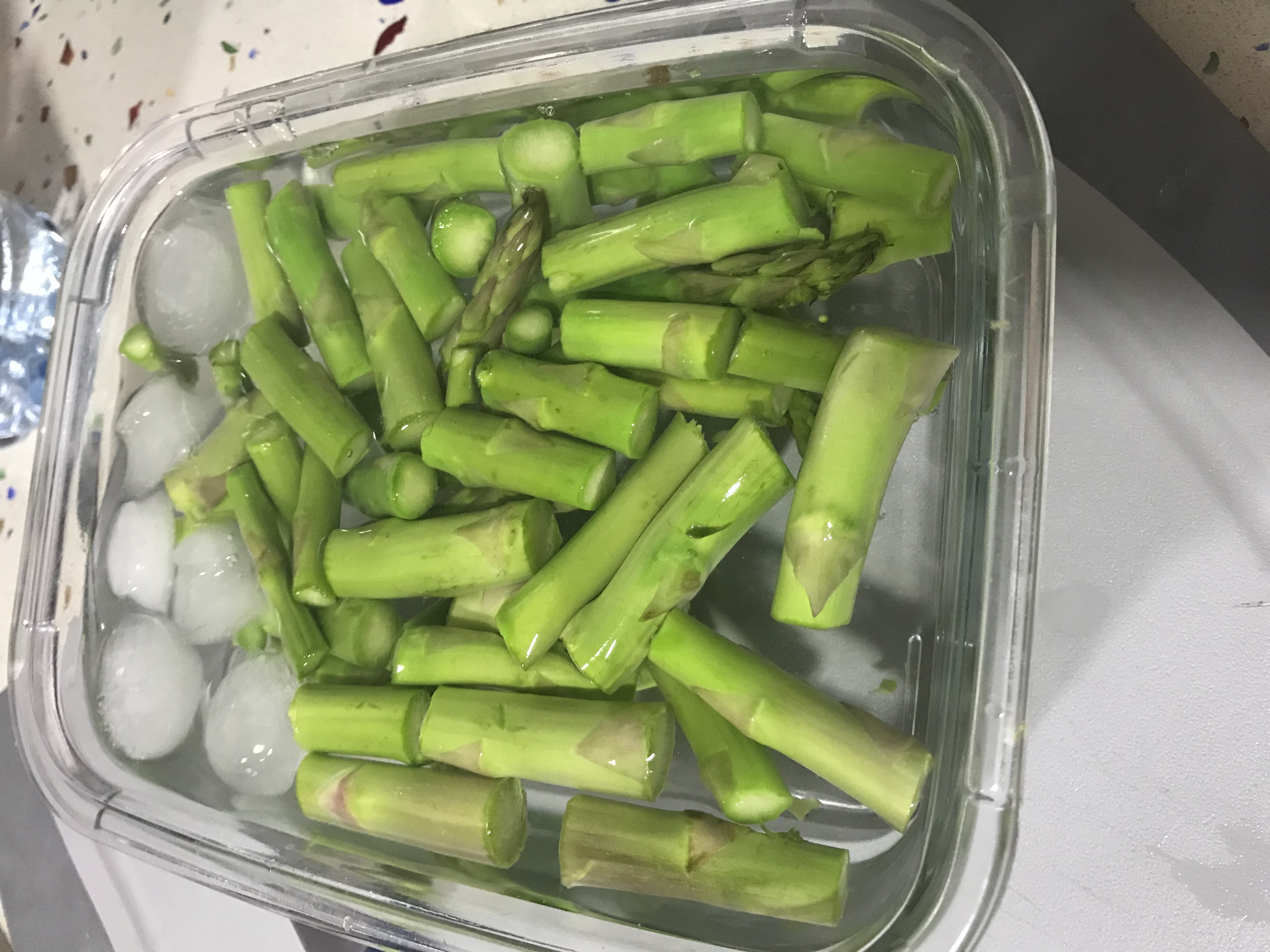 y ponemos los espárragos en el bol con hielo para cortar la cocción.