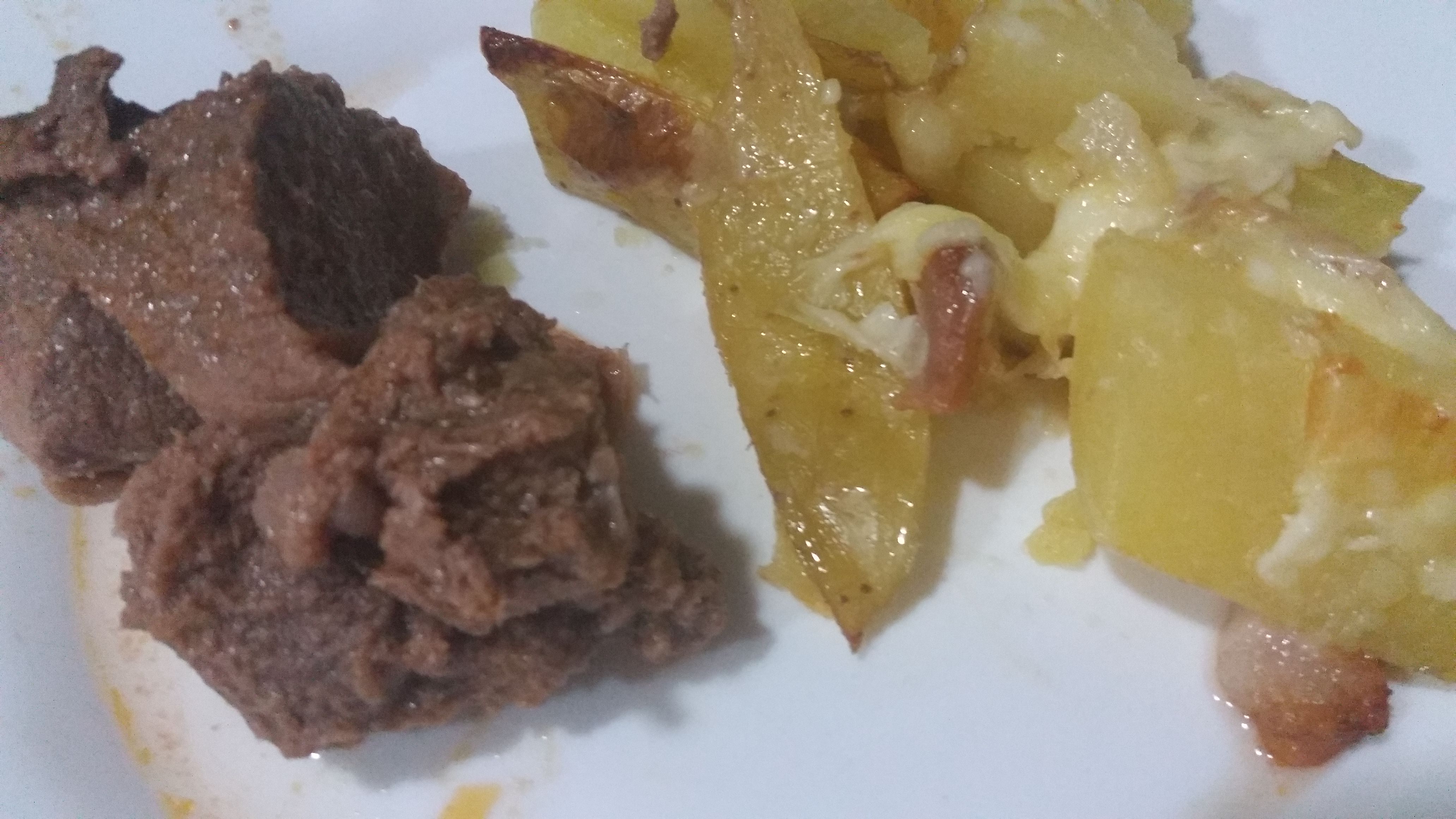 la verdad que estan jugosas, nada duras, se deshacen en la boca y ya sabemos que la carne de caza, esta dura, pero nuestro thermomix... es especial, ideal para cocinar... ahi os dejo el plato servido.., las pataticas gratinadas y la carne ...