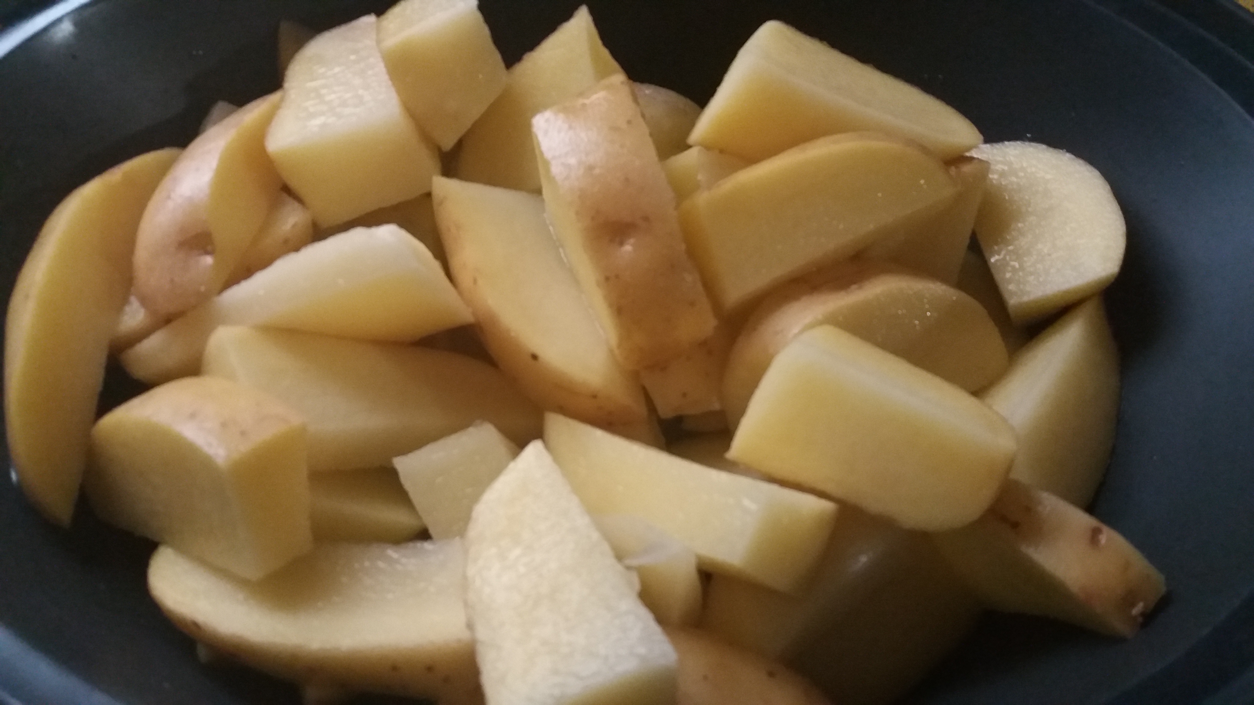 1kilo de patatas con piel lavadas y cortadas en octavos preparadas para el vapor