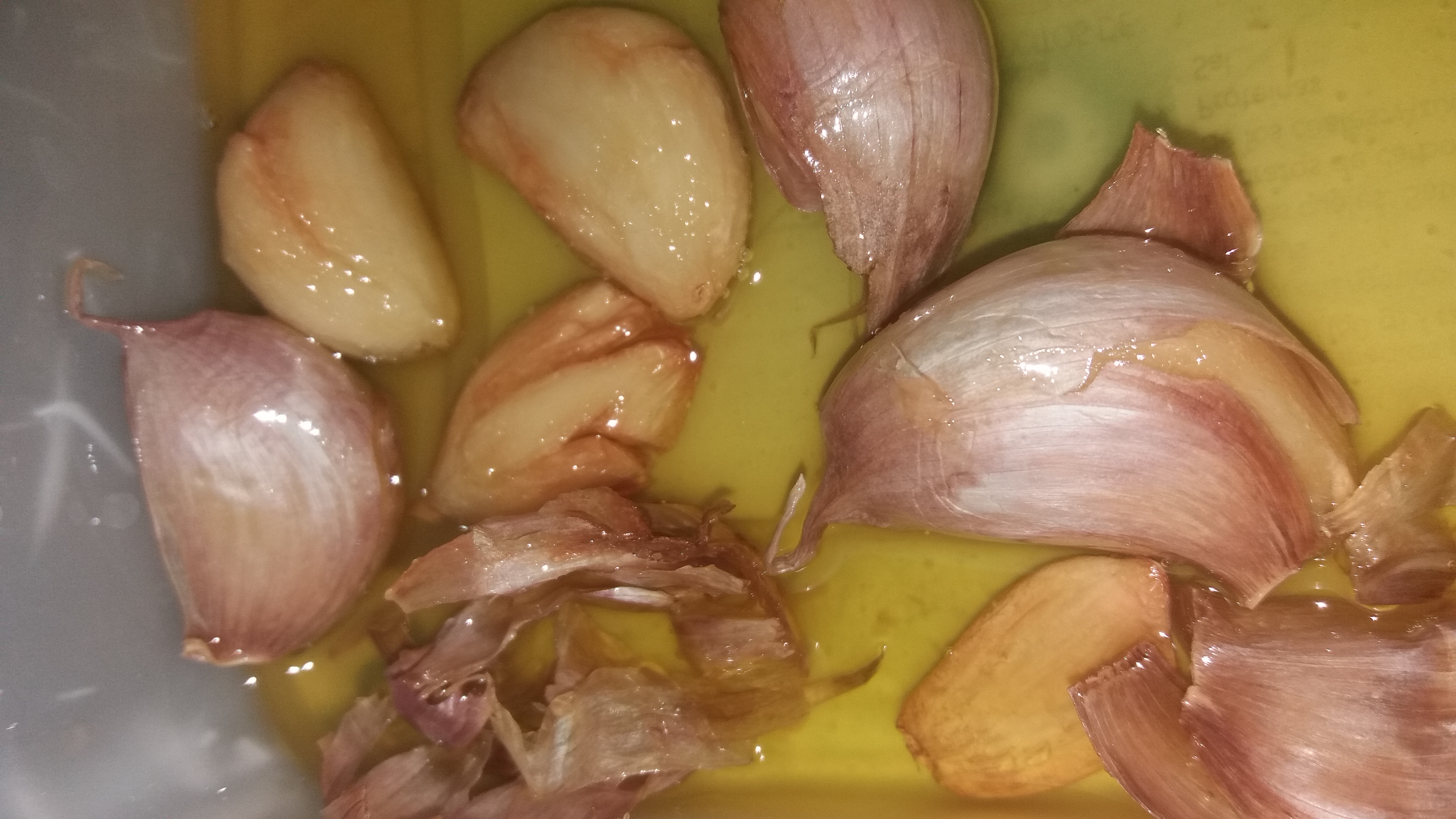 1. Echamos los ajos y el aceite y programamos 10 min/120º/ vel. cuchara y giro inverso ( TM 5) Y 10 min/ Varoma/ giro izquierda vel cuchara (TM31).