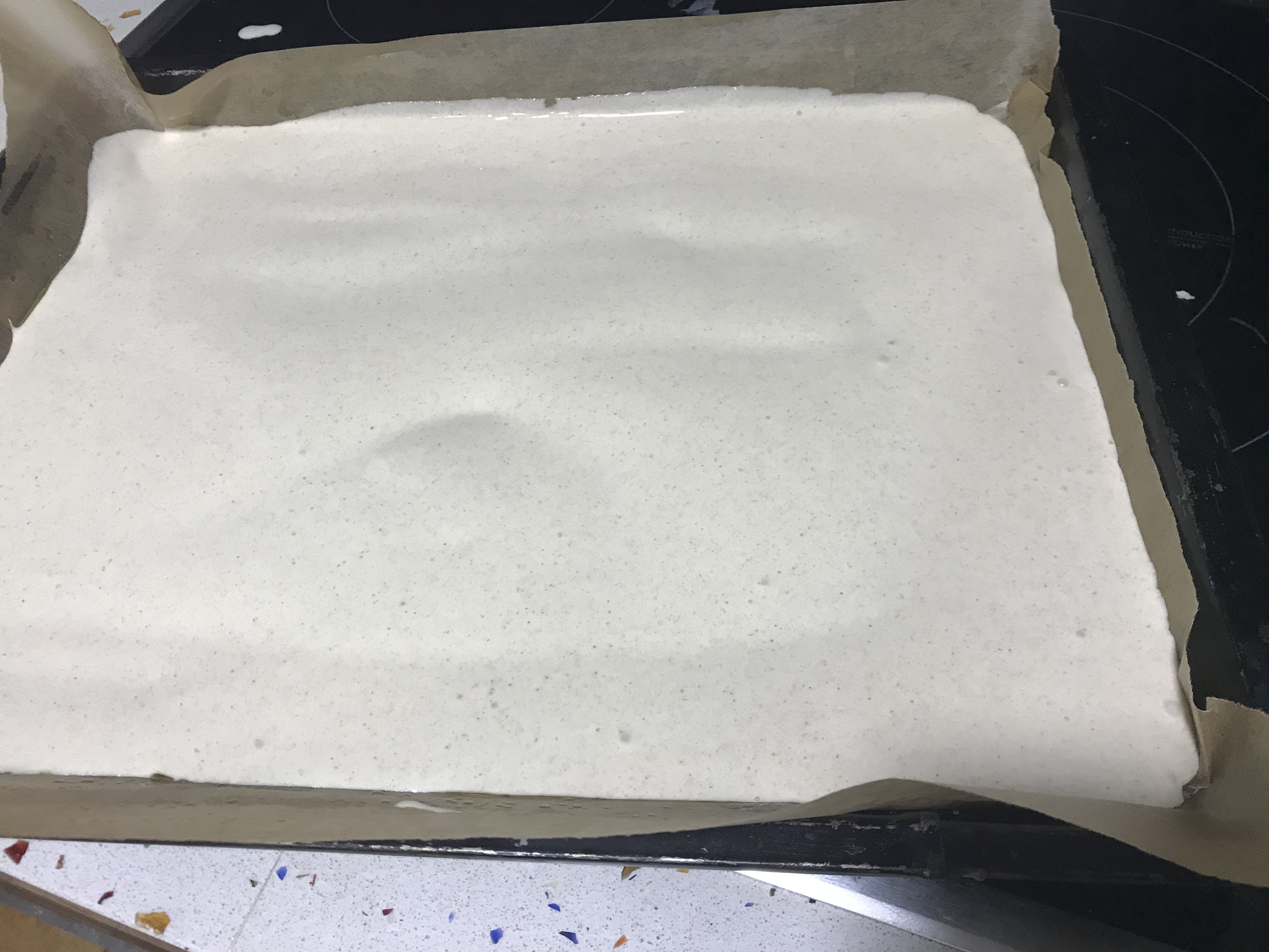 vertemos la mezcla encima de la bandeja reservada anteriormente y con ayuda de la espátula entendemos bien por todo los lados para que se quede uniforme,...