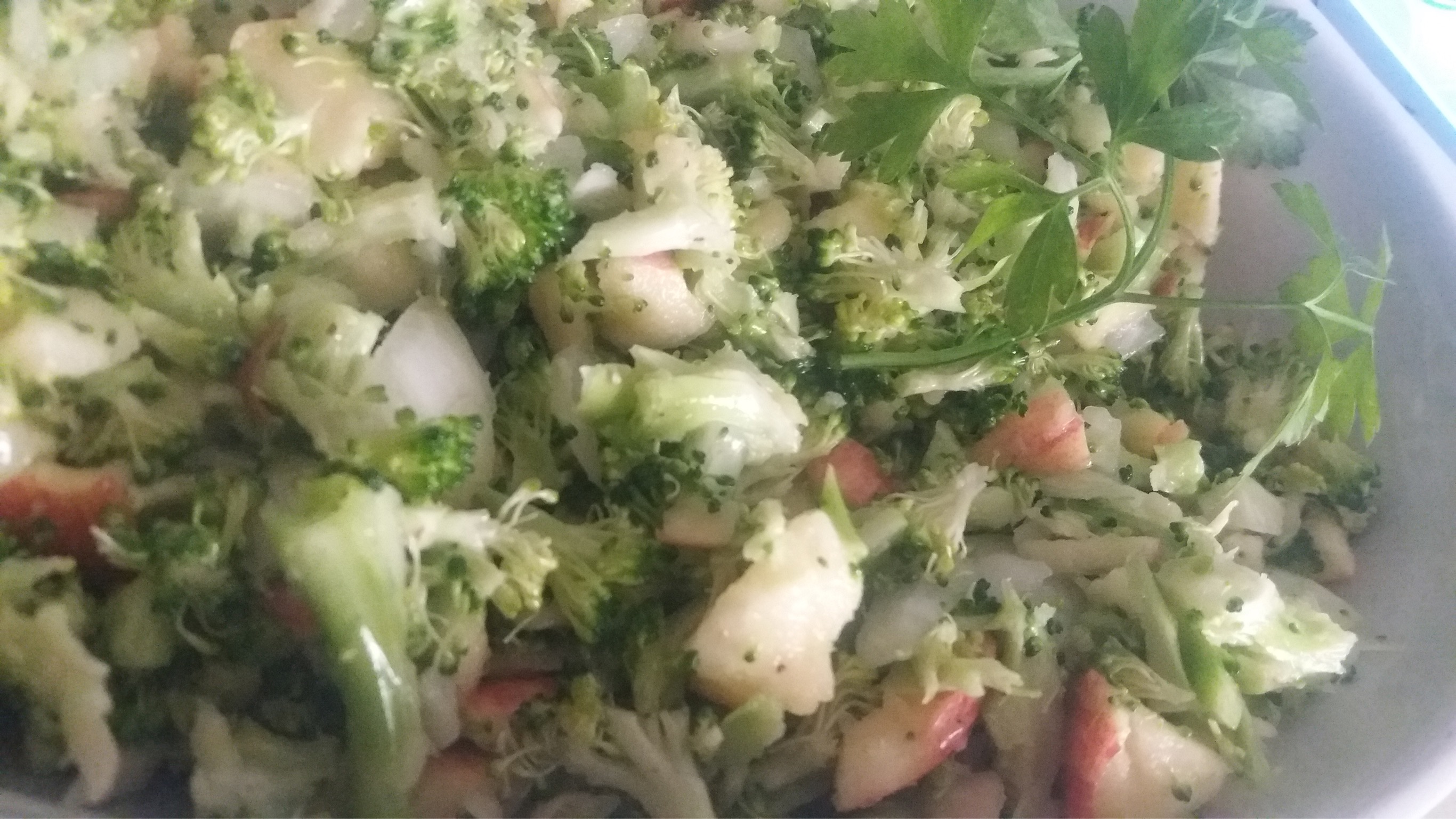 2. Seguidamente, echamos al vaso, el resto de ingredientes,... el brócoli,el calabacín,la cebolla, la manzana,el aceite,el zumo limon, las semillas y las especies,
