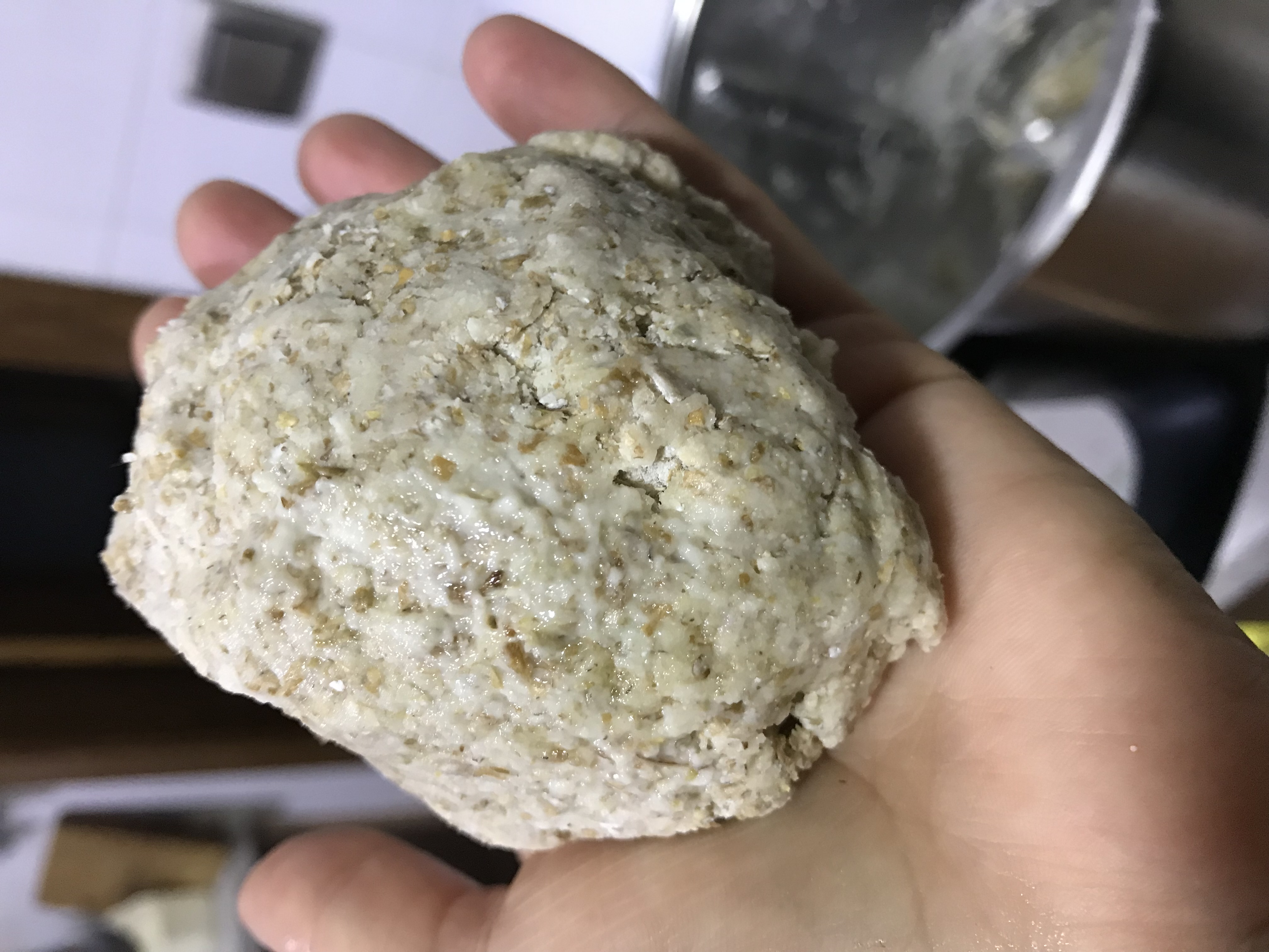 seguidamente, con las manos cogemos la masa y hacemos una bola de masa.... ver foto