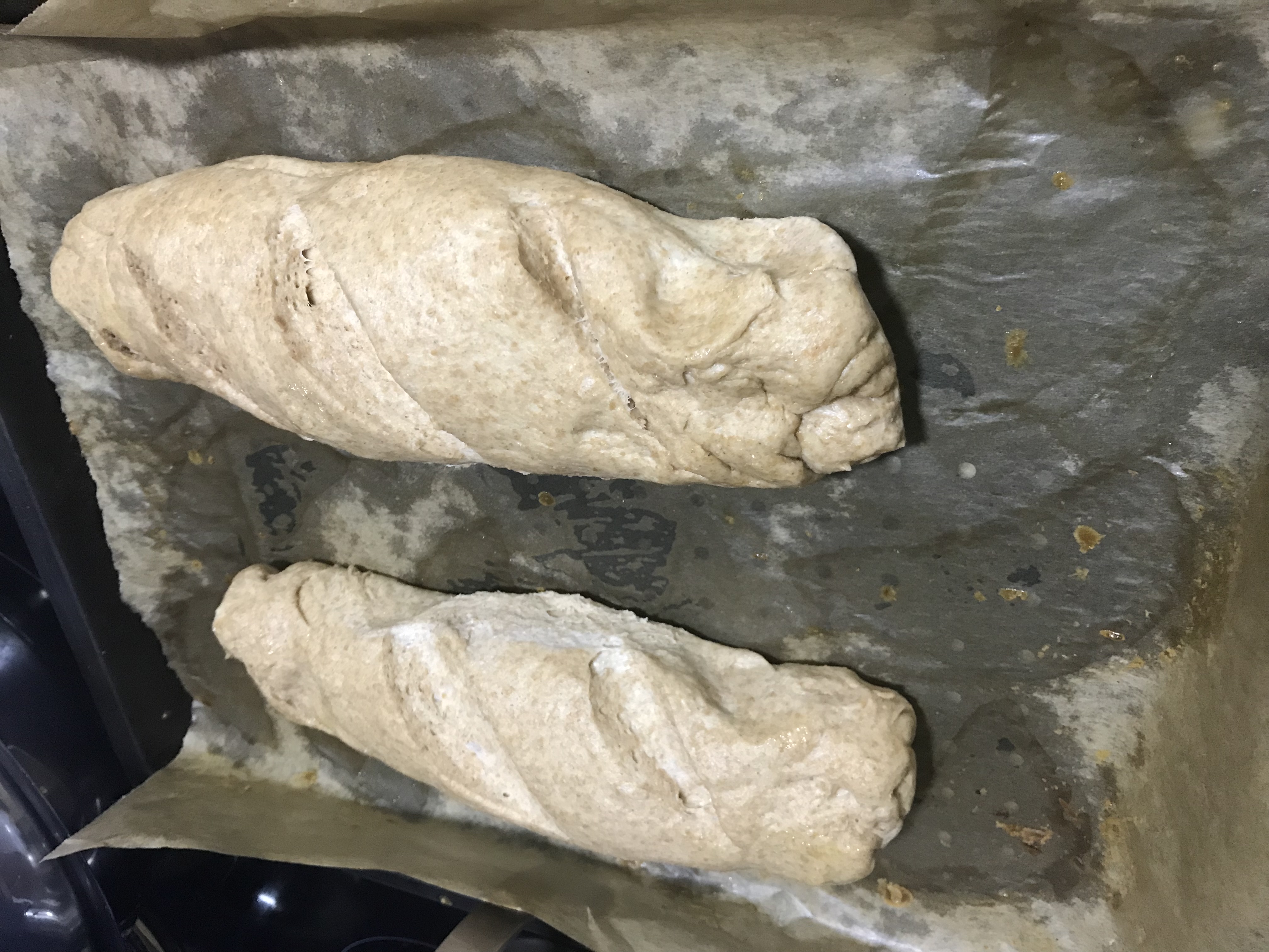 Pasado el tiempo, formamos barra, voleamos y damos forma de barra y dejamos reposar hora y media.