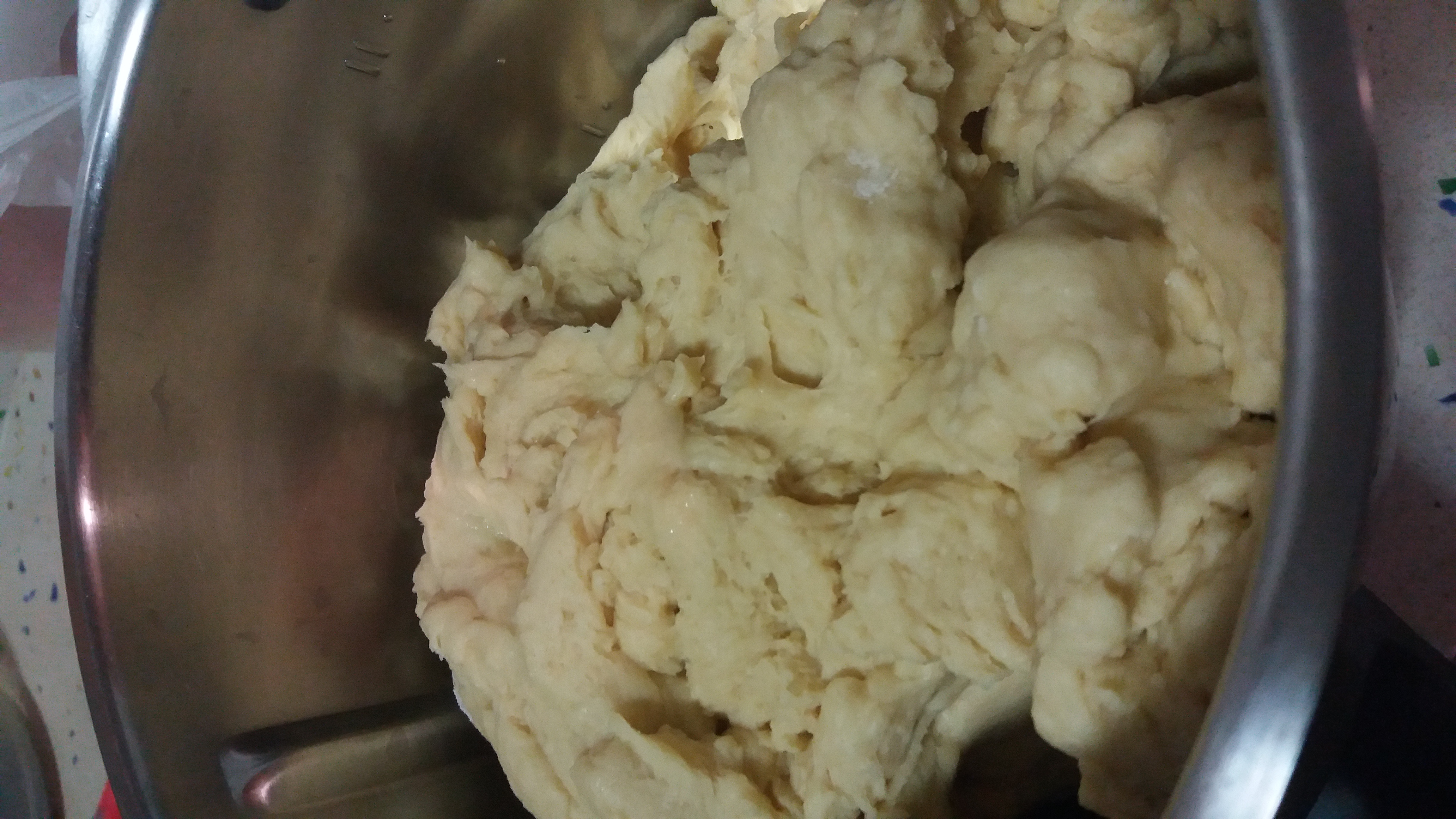 - Dejamos masa ( hasta las cuchillas ) y le echamos un cazo de harina más para sobar esta masa y así poder trabajarla con dibujos. mezclamos la masa con la harina unos 4 seg/ vel 6 y volvemos a amasar 1 min/vaso cerrado/vel. espiga.