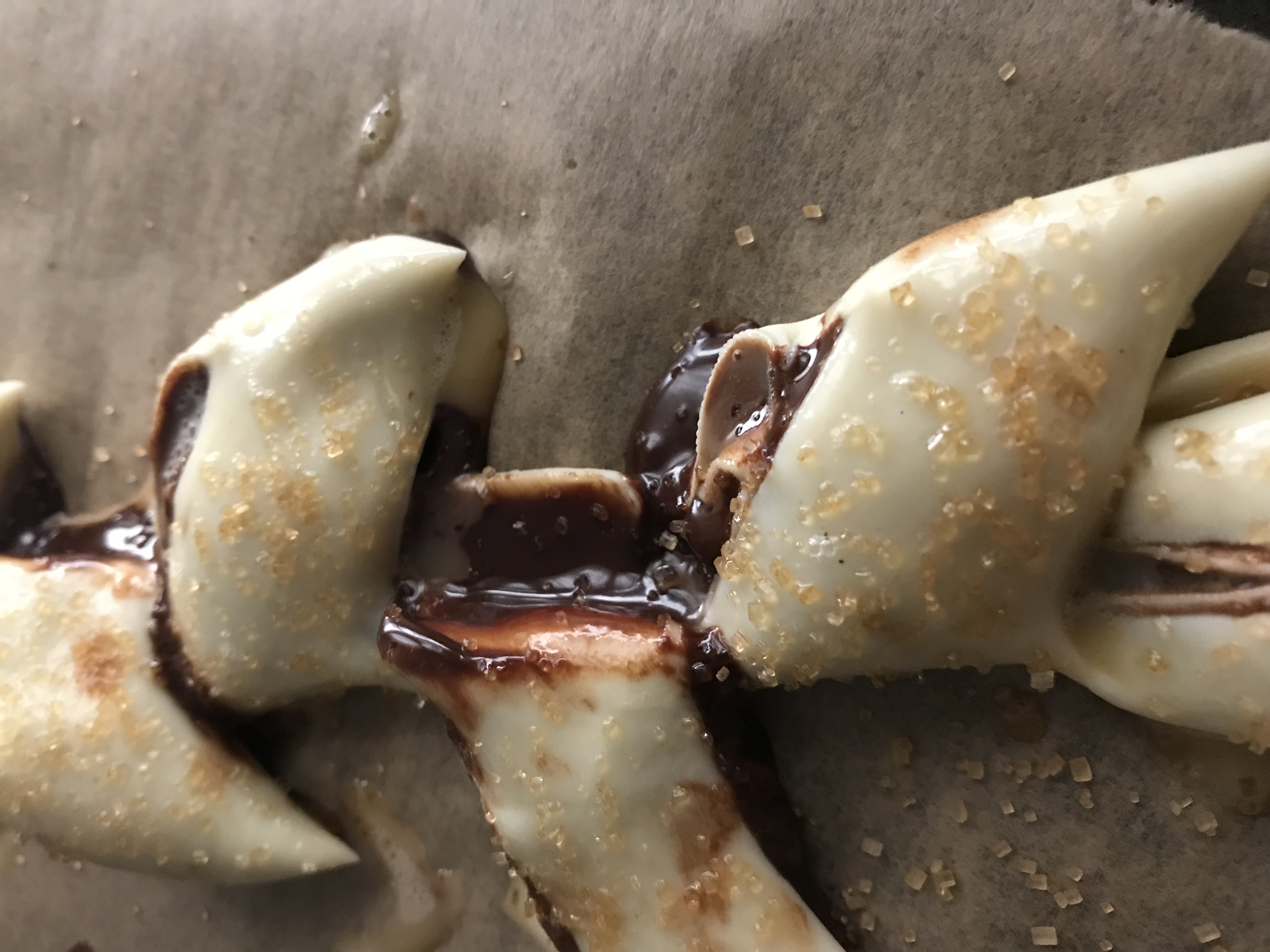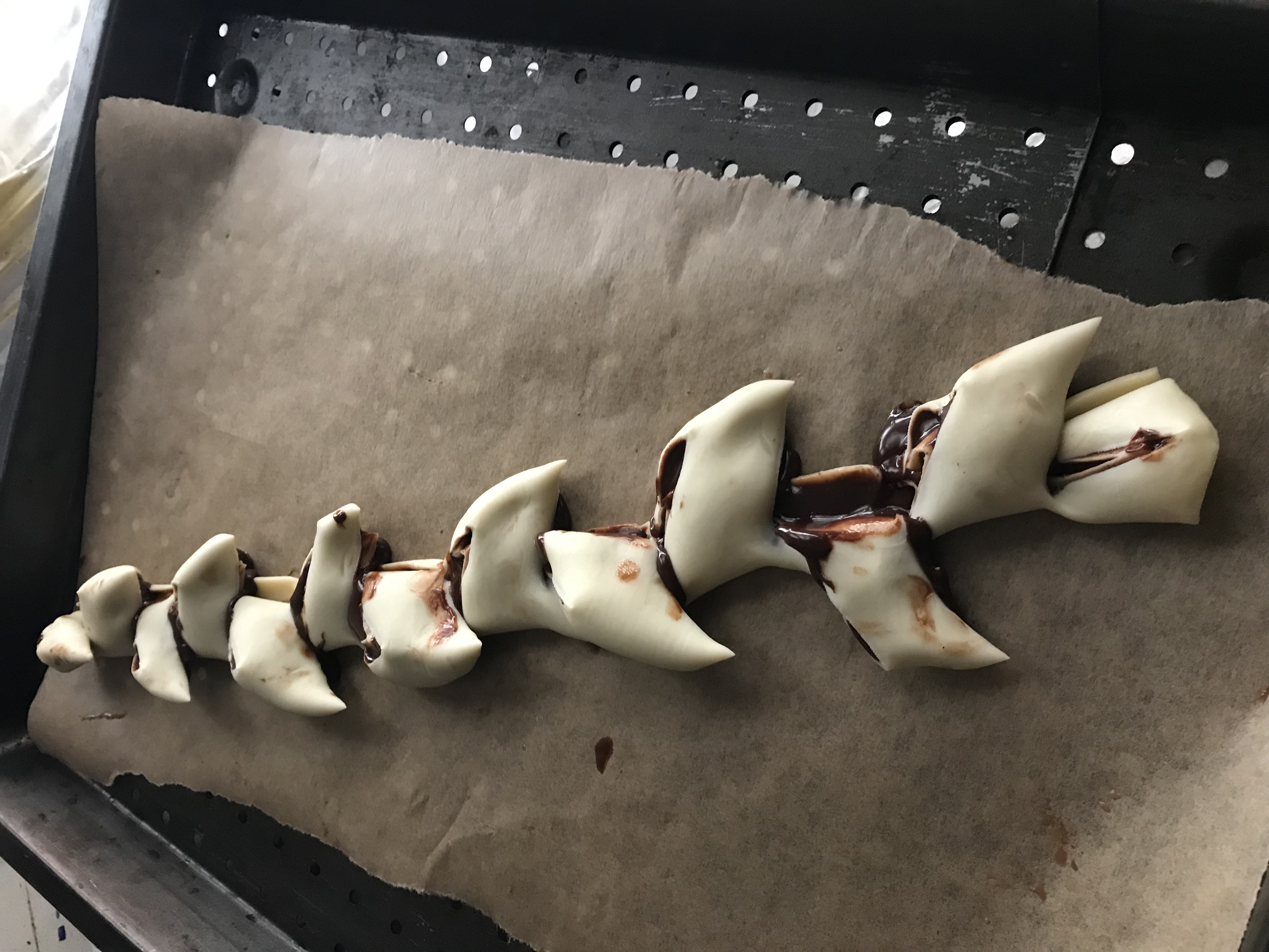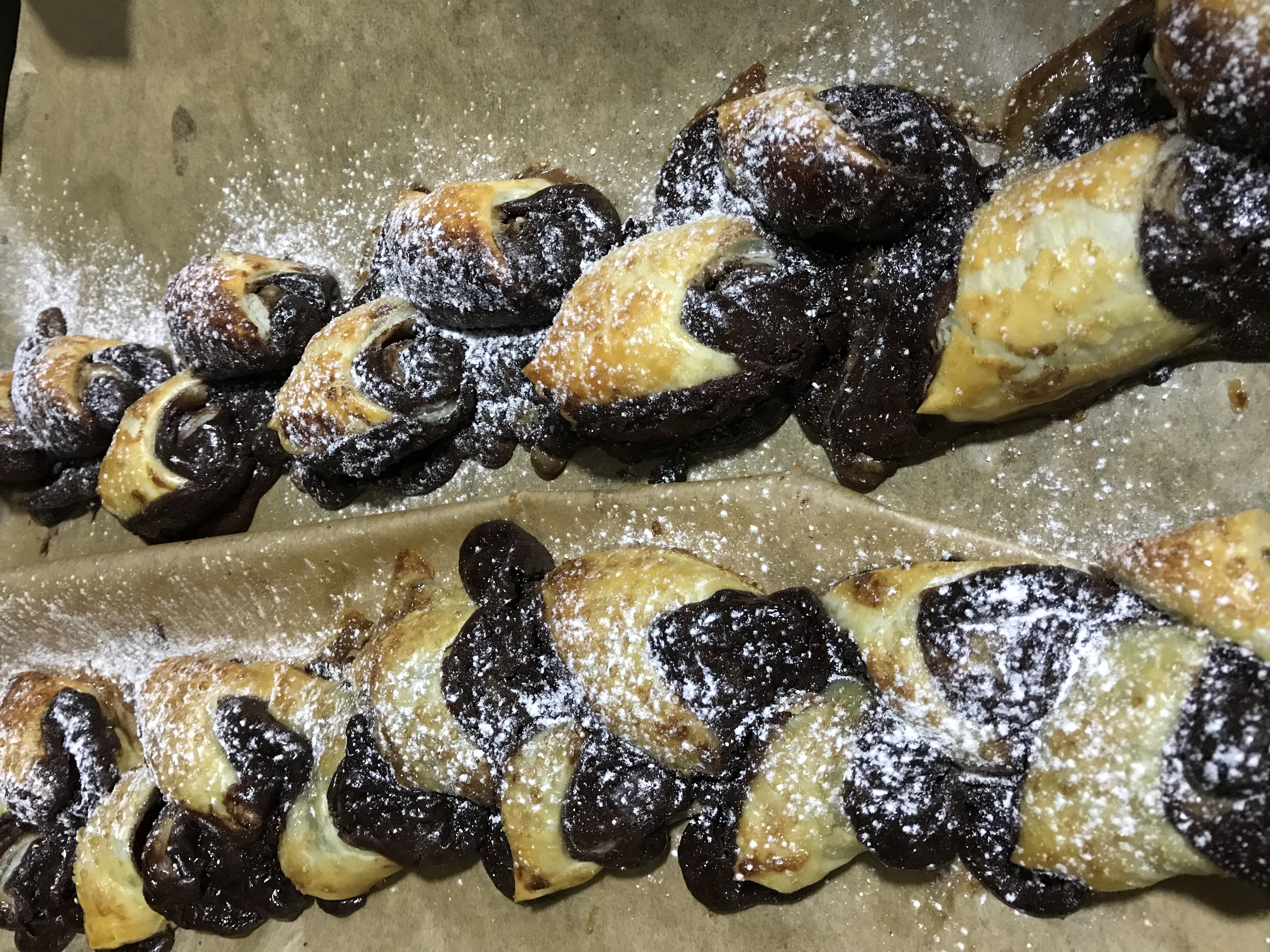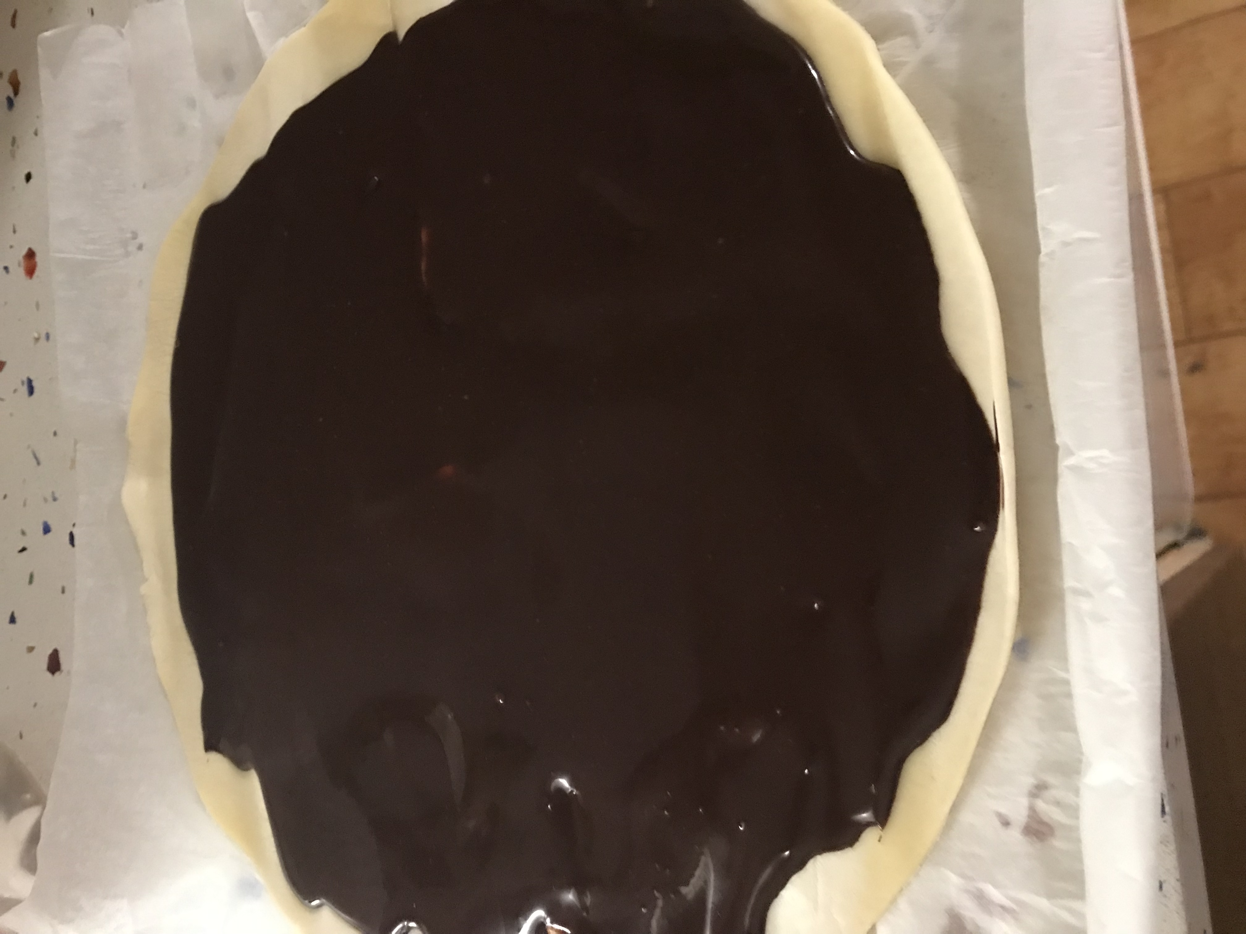 Extendemos hojaldre ,una capa de crema de chocolate,