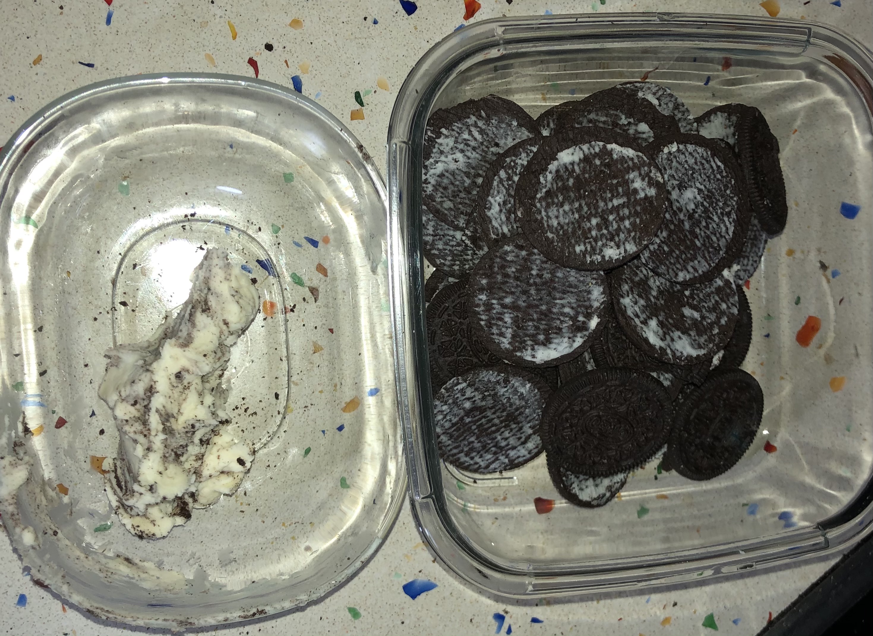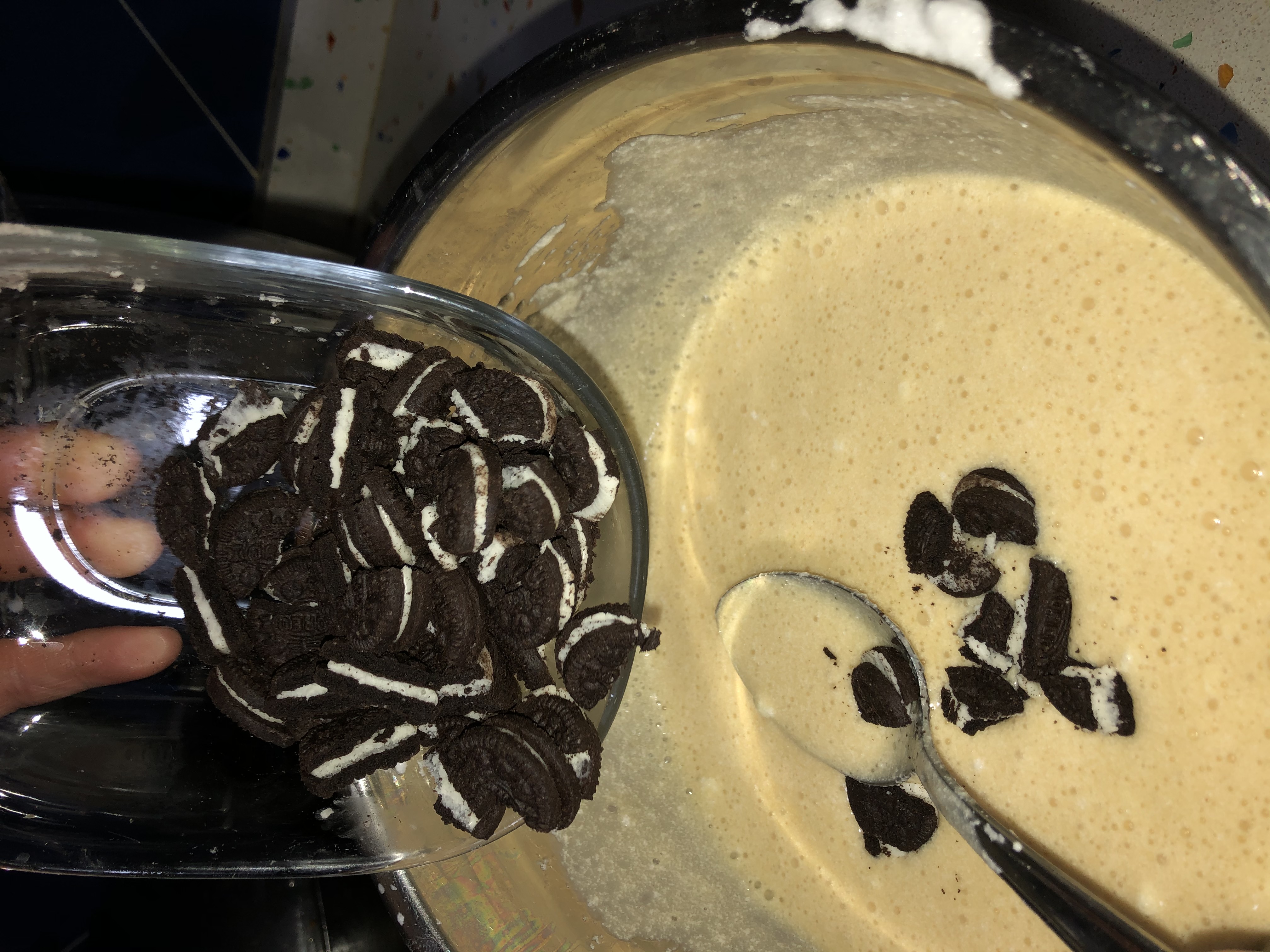por dentro..vamos echando las mini oreo, que teníamos preparadas cortadas en mitades..