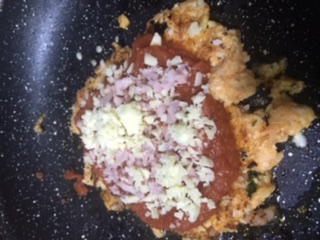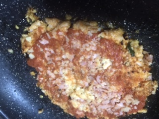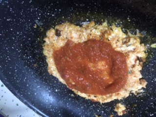 Cuando damos vuelta, yo he echado la salsa de tomate, tal y como veía en la siguiente foto