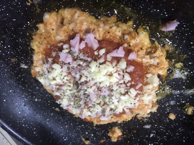 jamon york al gusto y queso rayado al gusto y vuelvo a echar orégano que me encanta