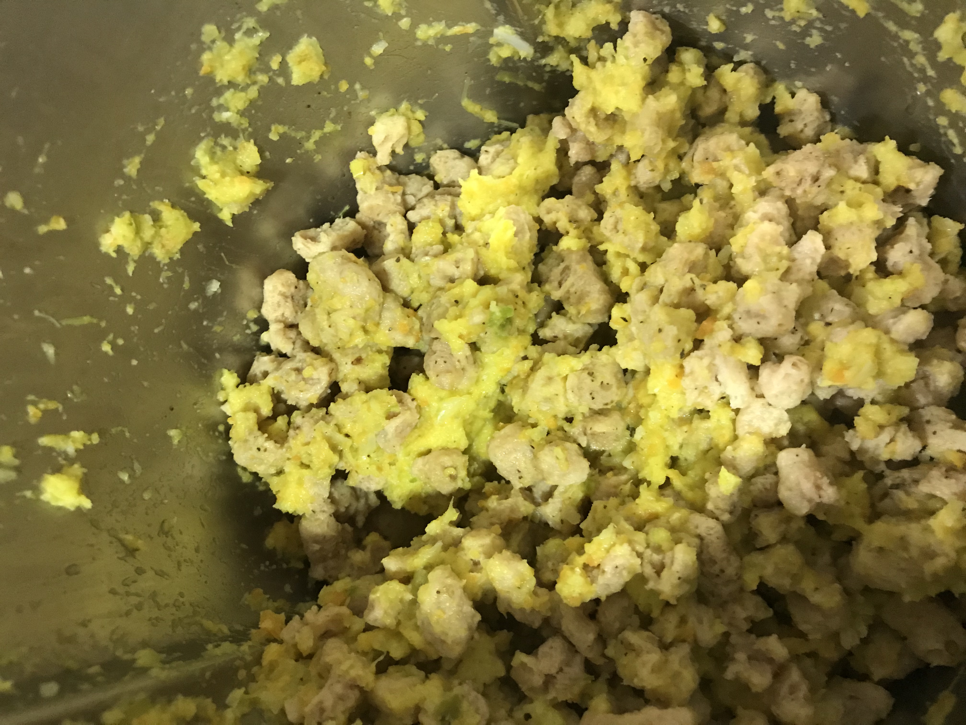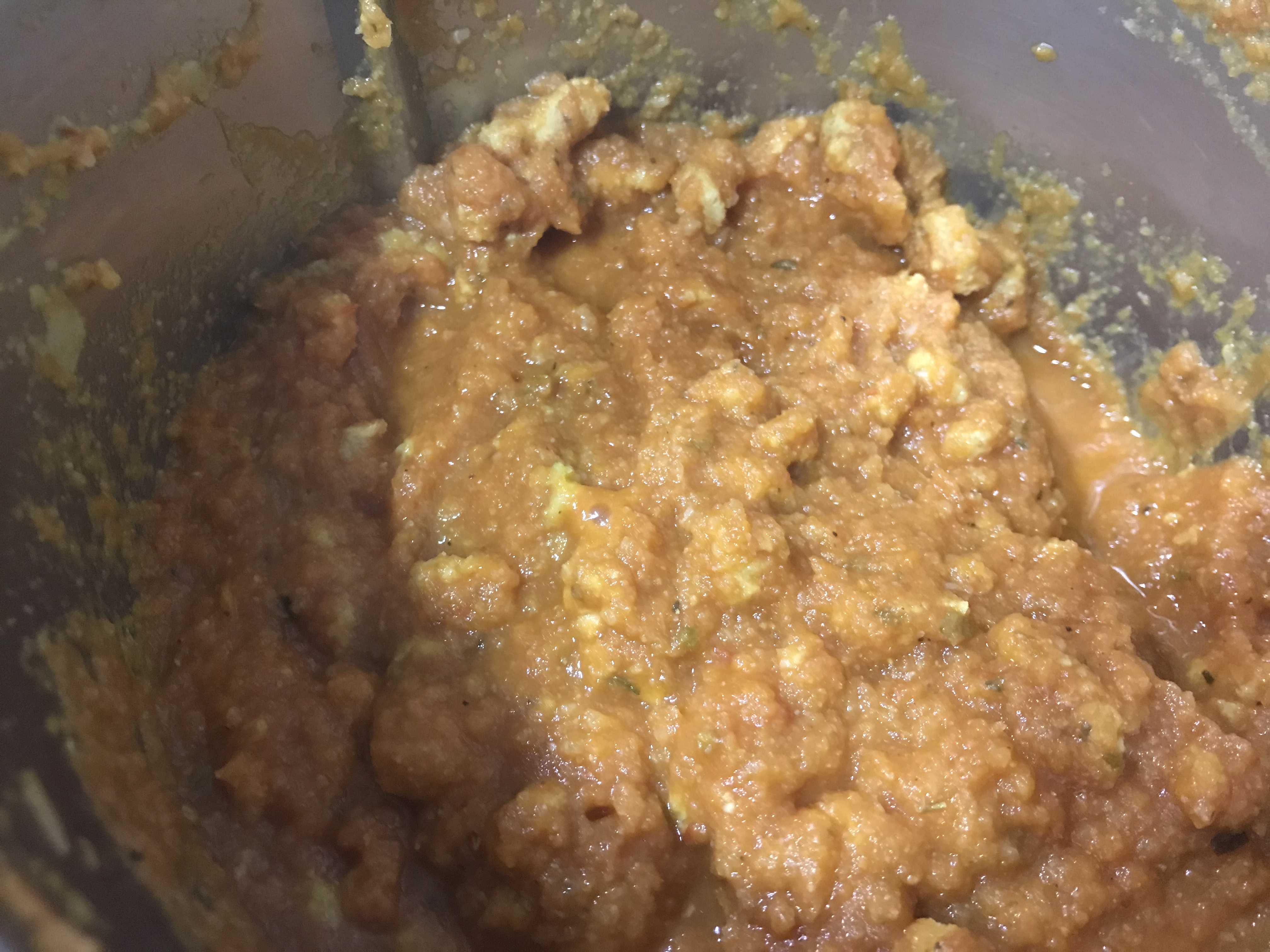 7. Incorporamos el tomate, la sal, el oregano y la pimienta y cocemos 20 min /120º/giro inverso vel cucharaTM5) ó 20min/Varoma/ giro izquierda vel cuchara (TM31).vertemos en un bol todo el relleno escepto unos 60 gr de sofrito( esto lo que va ha hacer es darle un sabor mas potente a la bechamel)
